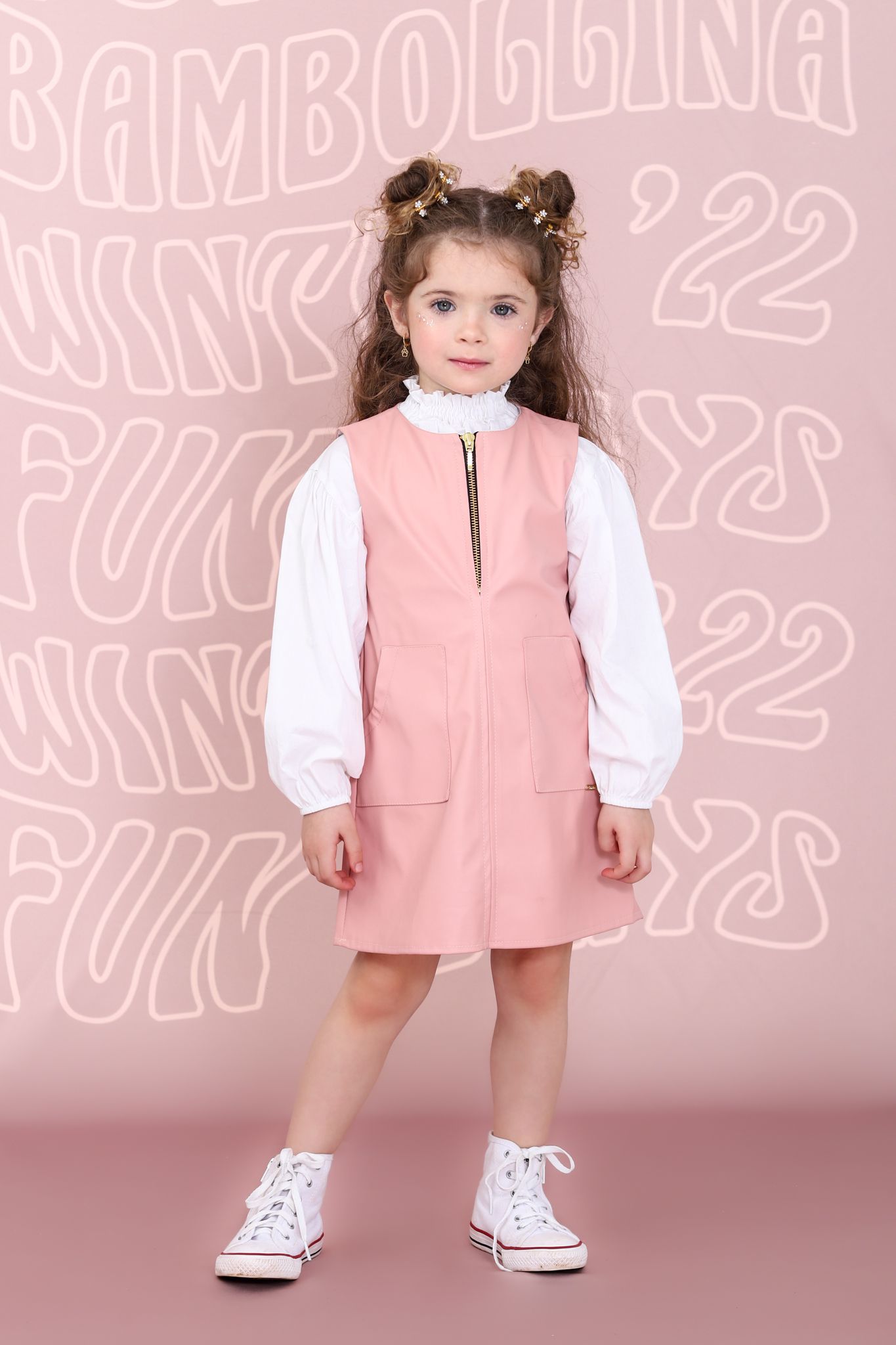 CONJUNTO CAMISA BRANCA E SALOPETE COURO ROSE 1089 BAMBOLLINA