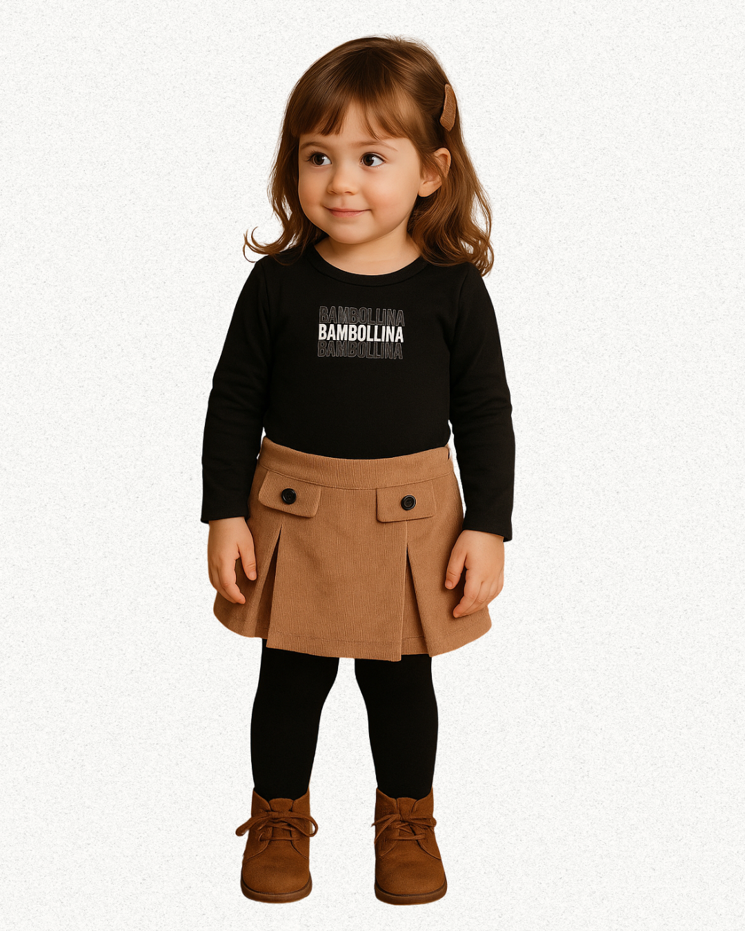O Conjunto Body Preto com Saia de Veludo Cotelê Bambollina é puro estilo com conforto.