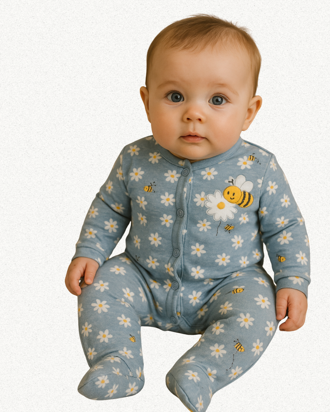 Deixe o bebê envolto em conforto e alegria com o Macacão Longo Margaridas e Abelhinhas 🌼🐝